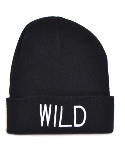 (unisex black beanie hat (various stitched logo) (imp) Unisexe noir de beanie chapeau (divers logo) ((one size) une taille, (black) noir (wild))