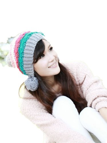 Autek nouveau chapeau d'hiver au style de korea Le bonnet en maille chapeau de femme avec deux sphères multiple couleurs mélangées 4 couleurs 512 (Gris)